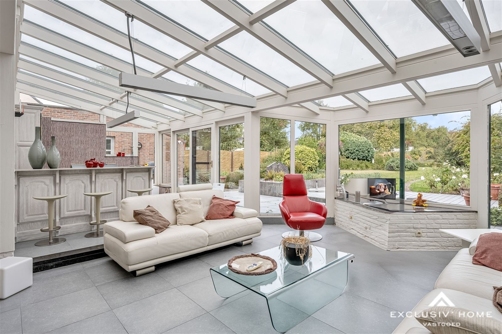 The fully walled garden ensures complete privacy and a peaceful atmosphere. A variety of mature trees and ornamental plants create a serene, countryside feeling. Landscaped terraces invite you to relax and enjoy the surroundings in all seasons.