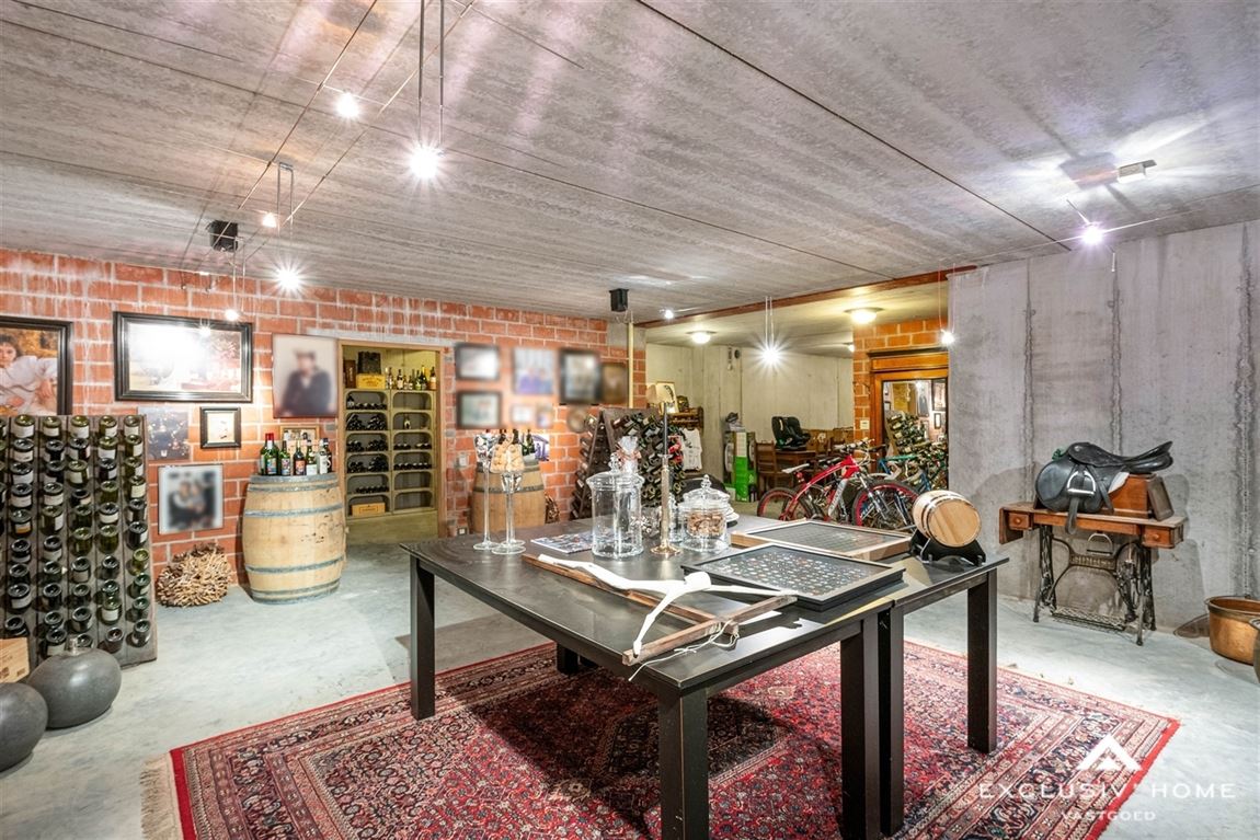 Op de eerste verdieping bevinden zich vier slaapkamers, een aparte badkamer met stoomdouche en een bergzolder. De woning is deels onderkelderd en herbergt een wijnkelder, een degustatieruimte, extra bergruimtes en een garage voor twee wagens.