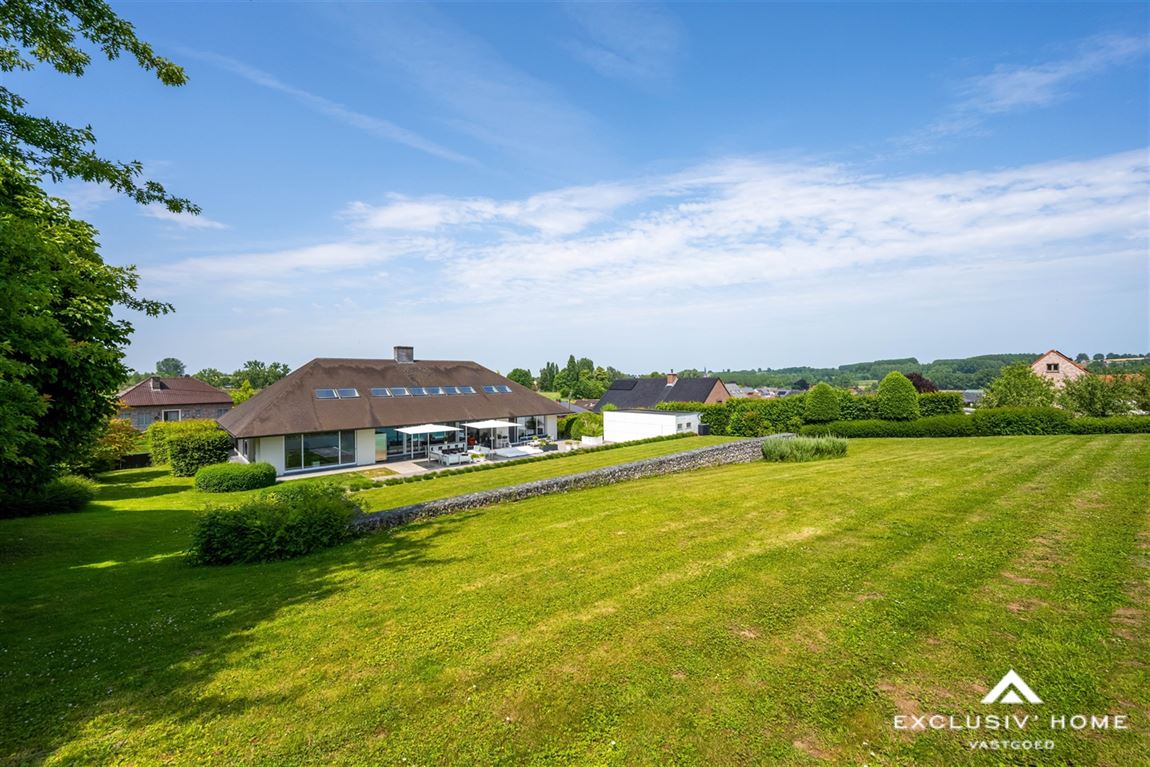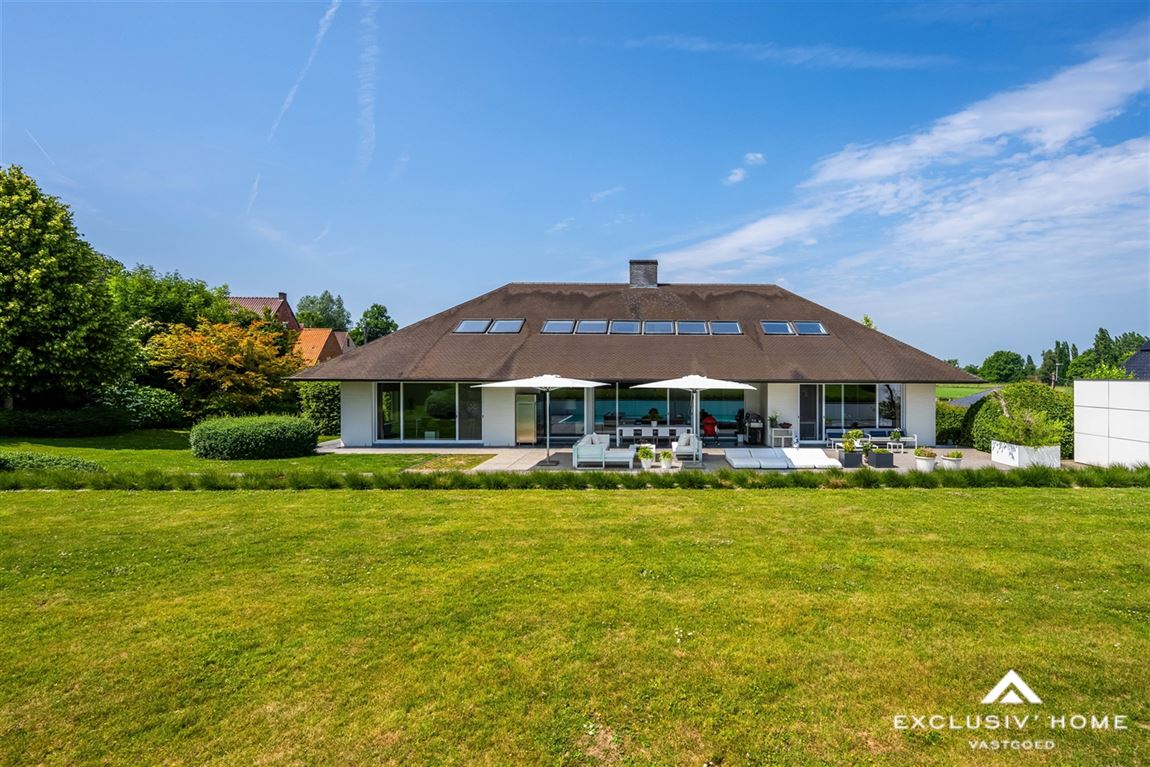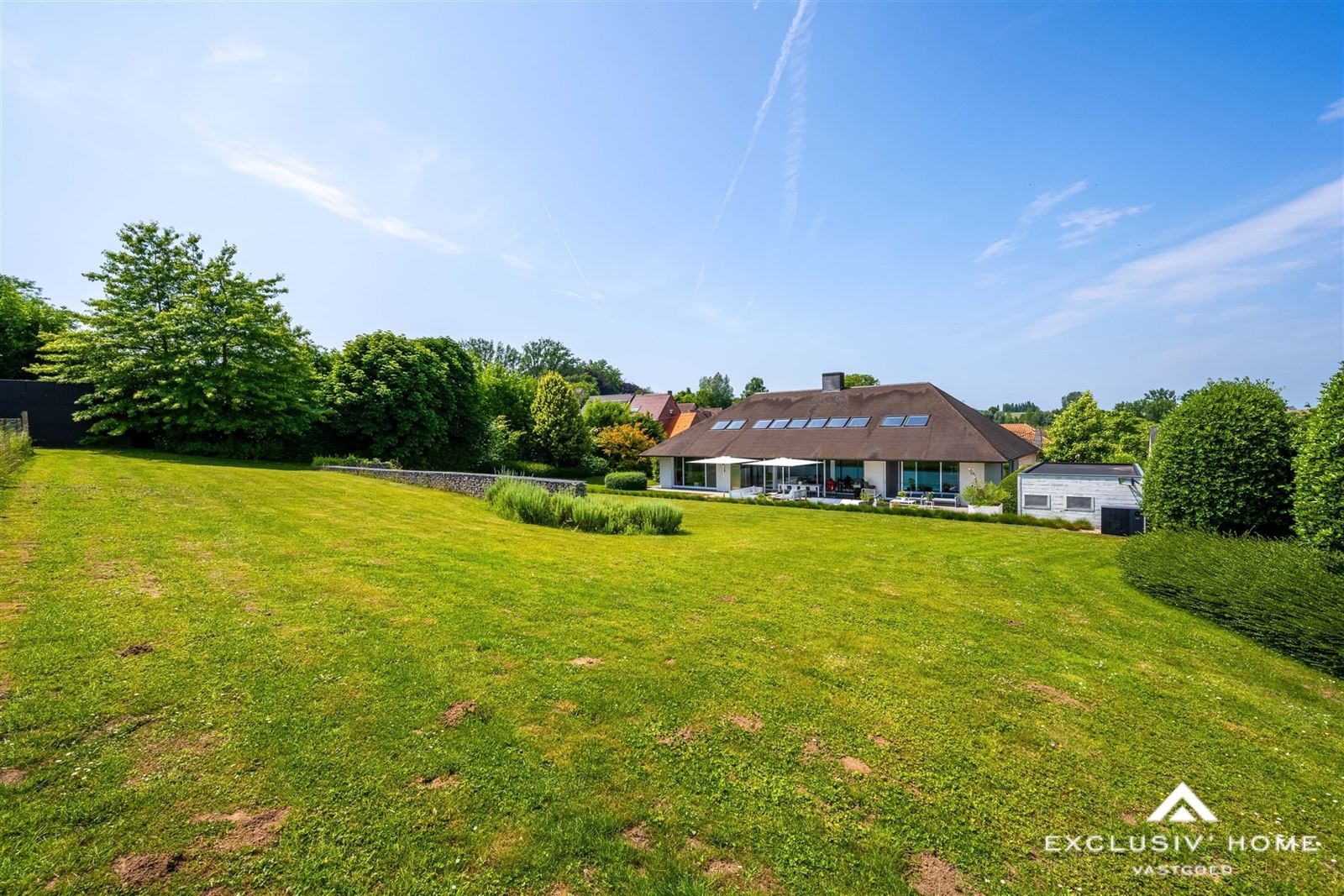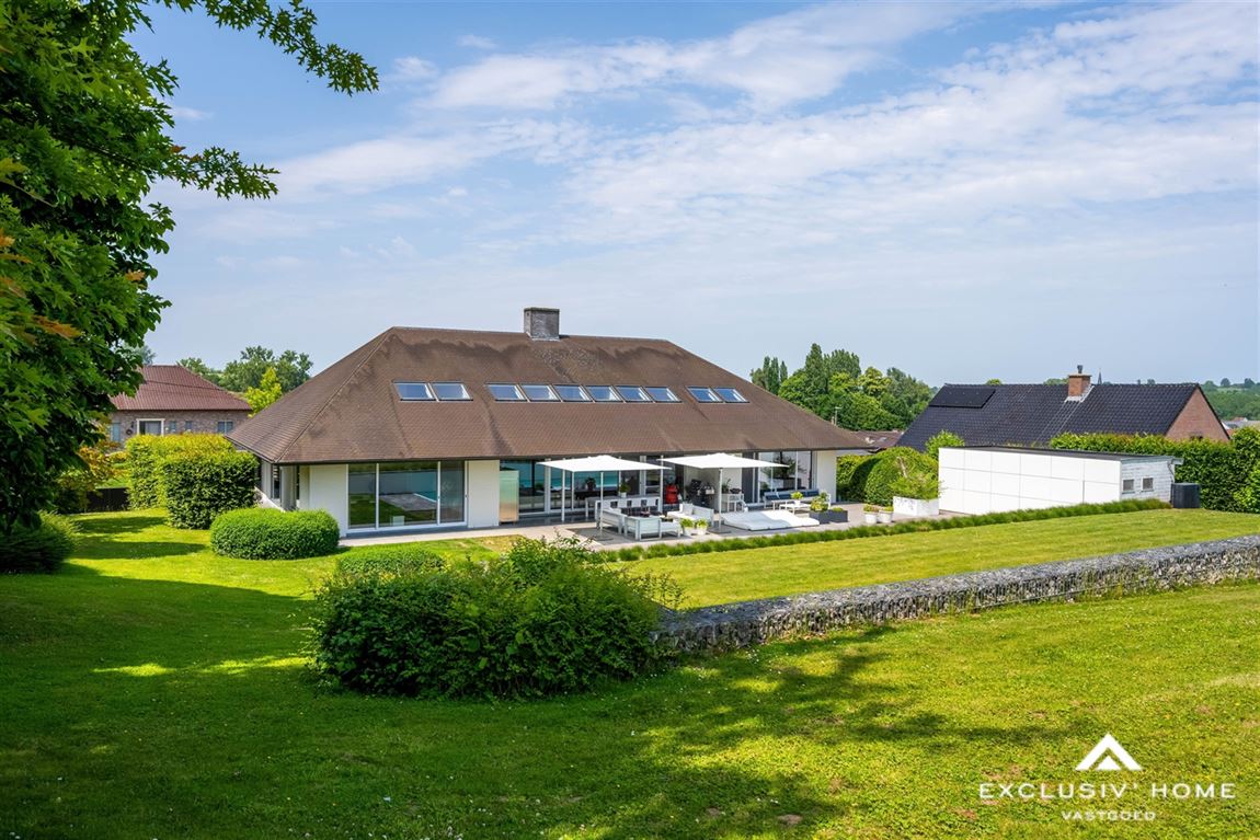 De villa, indrukwekkend in zowel omvang als architectuur, is gesitueerd op een landelijk domein van ongeveer 60 aren en wordt aangeboden samen met een achterliggende weide met stalling.