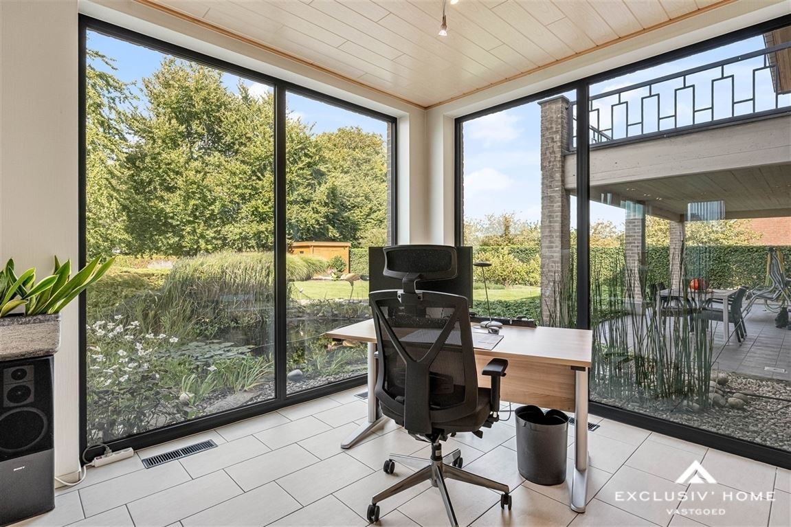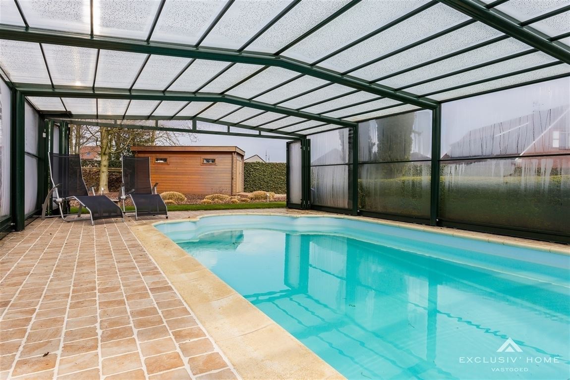 Deze stijlvolle villa bevindt zich op de grens van Opwijk, Merchtem met Asse. Ondanks het groene kader bevinden scholen, openbaar vervoer en winkels zich in de directe nabijheid. Zowel de aansluiting met de A12 (Meise) als de aansluiting met de Ring (Wemmel) zijn beide op zo’n 10 à 12 km. Dit vastgoed bevindt zich op een terrein van 3234m² met een mooi aangelegde voortuin en een schitterende parkachtige achtertuin. Deze imposante villa, met bouwjaar 2000, heeft een exceptionele beleving door haar grootte, opbouw en modern comfort. Deze moderne villa combineert een overvloed aan licht, glaspartijen en open binnenruimtes met een optimale isolatie- en energie-efficiëntie. De woning is perfect geschikt voor het uitoefenen van een vrij of zelfstandig beroep. Een professioneel gedeelte met wachtkamer, consultatieruimte, bureau- of praktijkruimte, kan perfect afgescheiden worden van de privé-woonruimtes. De twee delen van het gebouw zijn uiterst functioneel en esthetisch met elkaar verbonden. Bij het ontwerp van deze stijlvolle woning werd de klemtoon gelegd op wooncomfort en gezelligheid. Enkel de beste materialen werden gebruikt. Alle comfort- en nutsvoorzieningen werden vakkundig geïntegreerd in de mooie binnenarchitectuur en creëren een gezellige woonomgeving. Er is een garage voor 2 wagens alsook een volledige kelderverdieping onder het gebouw. De mooie achtergelegen tuin bevat enkele gezellige zithoeken, poolhouse, vijver, buitenkeuken alsook een overdekt verwarmd zwembad (8m x 4m) met uitschuifbare koepels. De privacy is 100% verzekerd mede door de afsluiting met hekken langs de straatkant, alsook door de volgroeide hagen en planten langs de tuinkant. Dit is aldus de ideale opportuniteit voor mensen die op zoek zijn naar een stijlvolle, instapklare woning, die graag net buiten de stadsdrukte willen wonen maar toch alles binnen wandelafstand willen hebben. De woning is in perfecte staat. EPC: 179 kWh/m² – zonnepanelen (11.000 kWh) met groenestroomcertificaten inbegrepen.